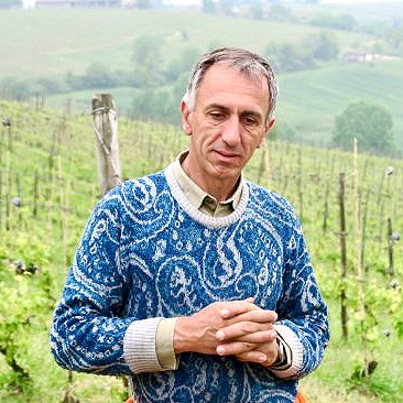 カサーレ・デル・モンフェッラートにブドウ畑10ヘクタールを含む40ヘクタールの所有地を使って、肉牛を飼い、与える餌もすべて自分で生産したものを使用、小麦などのワラと牛糞を使って堆肥を作りそれを畑に返すという、完全循環型のバイオダイナミックス農法を30年以上実践しています。ワイナリーでもごく少量の2酸化硫黄以外の薬剤は一切不使用。